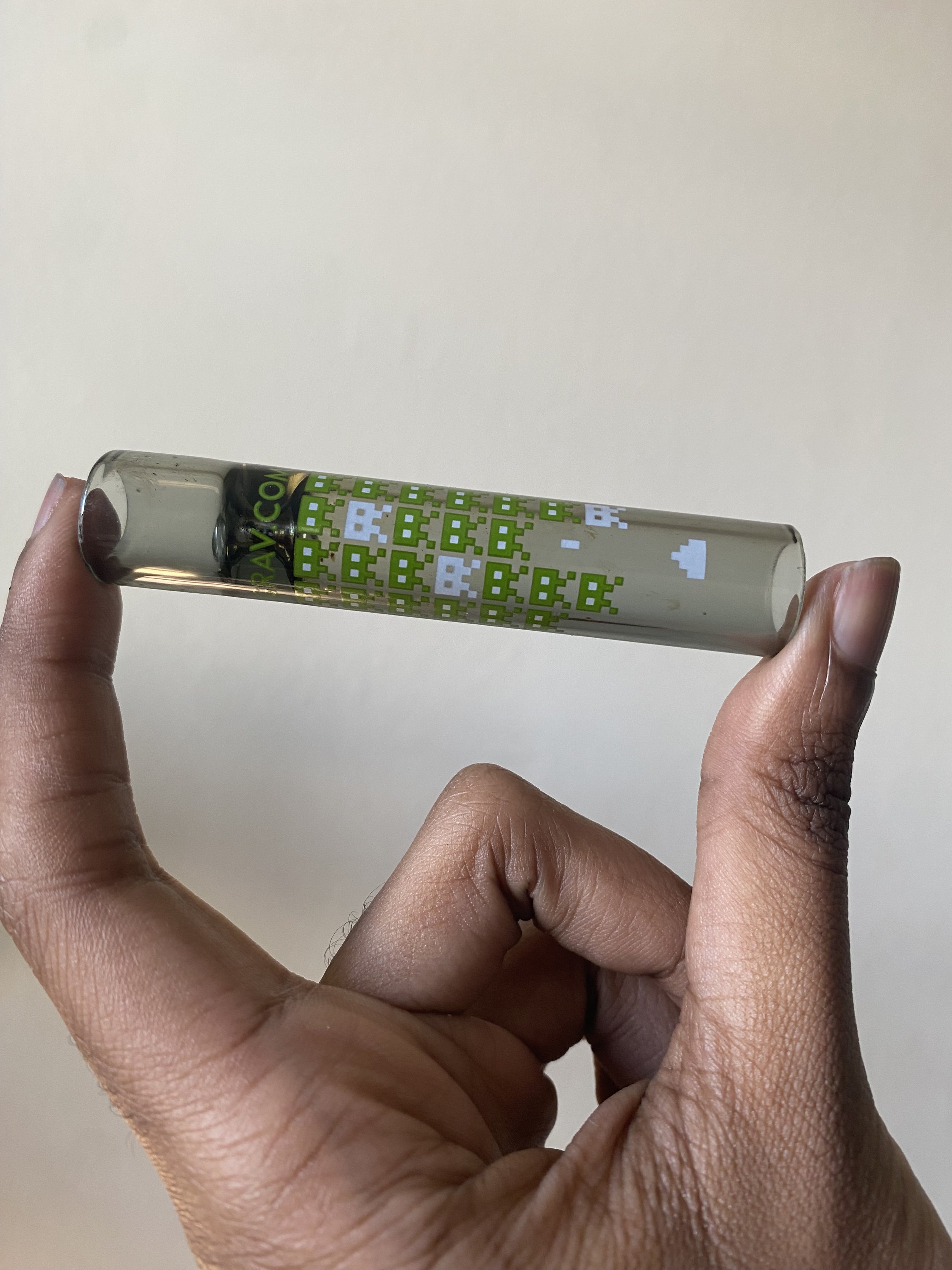 The concept of it is criminally simple. The GRAV Taster line is a basic glass chillum - a tube made of borosilicate glass with a .25g bowl on one end. That’s it. Pack it, light it, hit it. Done.