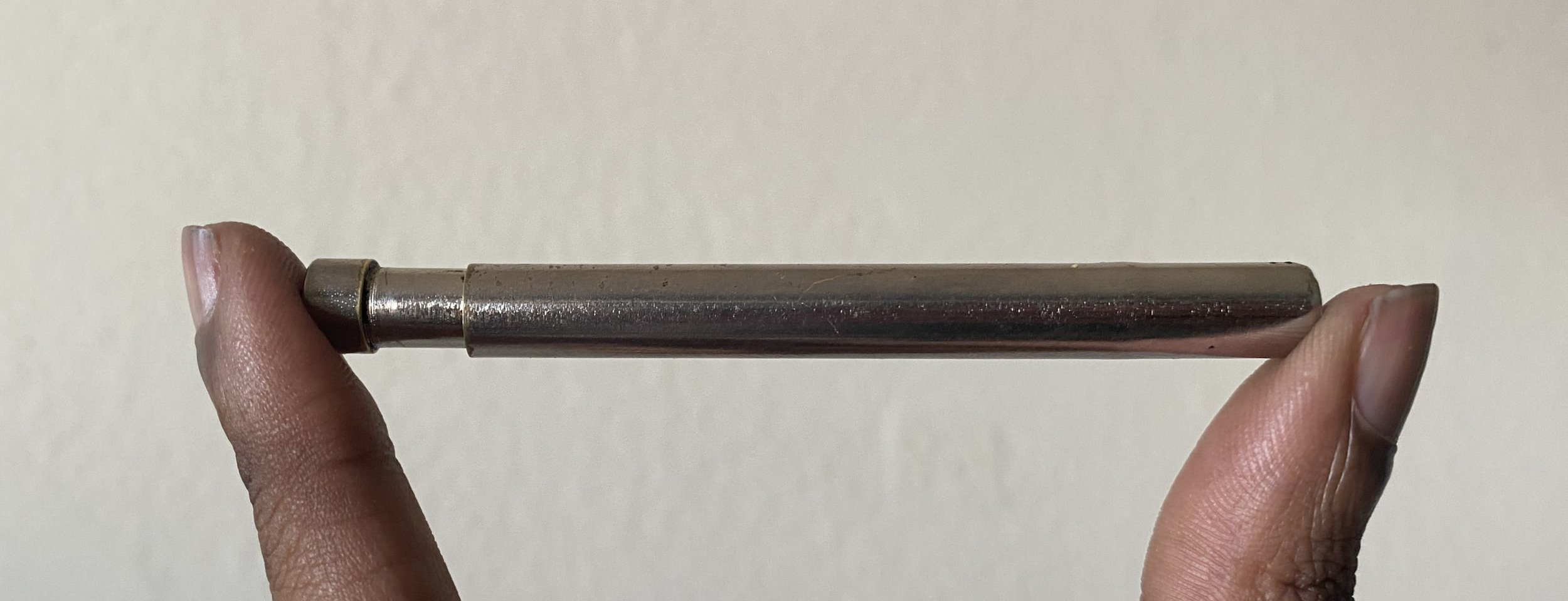 But slowly, without meaning to, I found myself reaching more and more for an old, featureless stainless steel one-hitter I’d had forever. Unbranded. Cigarette-sized. Small opening on one end. Spring-loaded plunger on the other to ash it.